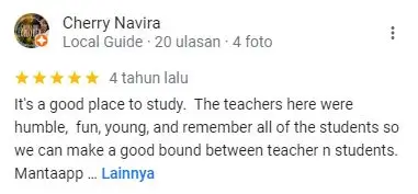 Di Kampung Inggris Unicef tentunya memiliki tutor yang sudah berpengalaman dibidangnya. Dengan metode yang bervariasi yang akan membuat proses pembelajaran semakin menyenangkan dan membuat kita lebih mengerti dengan materi yang disampaikan.